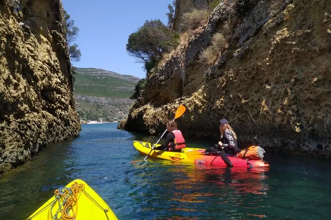 Remar em águas cristalinas de Lisboa até Arrábida, explorar grutas antigas com guia, saltar de penhascos aquecidos pelo sol, fazer snorkel entre peixes coloridos na reserva marinha e terminar com um almoço tranquilo na praia antes de brindar com vinho do porto caseiro no caminho de volta.