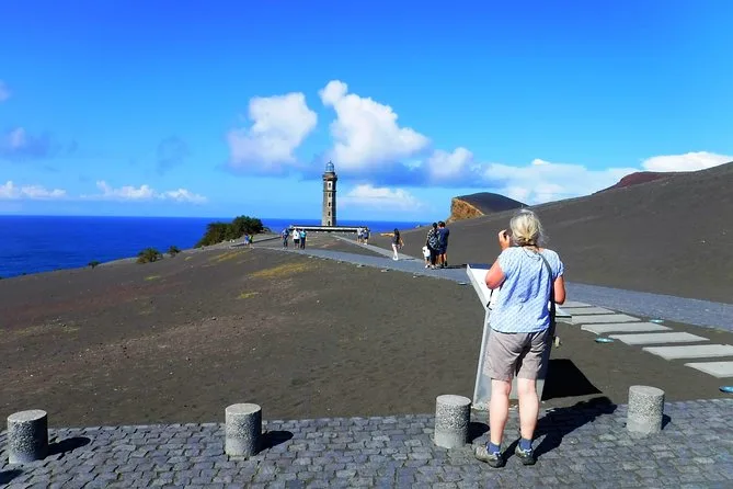O vulcão Capelinhos foi o último ponto: cinzas cinzentas por toda parte, o farol meio enterrado como um navio naufragado. O silêncio era quase total, só o vento e o som dos nossos passos na pedra-pomes. Alguns entraram no centro de interpretação; eu preferi caminhar devagar pelas ruínas das antigas baleias, agora engolidas pela areia. É estranho — dá para sentir o quanto essa terra é nova sob seus pés. No caminho de volta, João contou histórias das erupções e dos pescadores que se recusaram a sair, mesmo quando a cinza cobriu tudo. Às vezes ainda penso nessa teimosia.