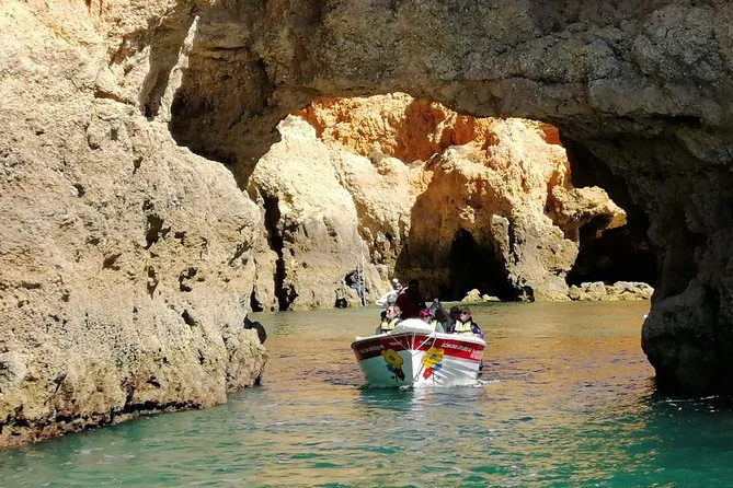 Você vai navegar de Lagos num barco tradicional com uma equipe local, passando por praias secretas antes de explorar de perto as famosas grutas da Ponta da Piedade em um barquinho menor. Curta as histórias do guia multilíngue e aproveite as falésias douradas do Algarve — há algo de mágico em deslizar sob elas.
