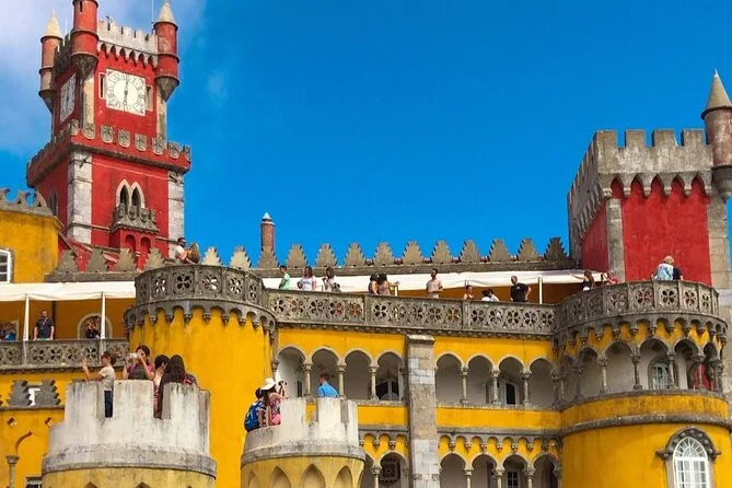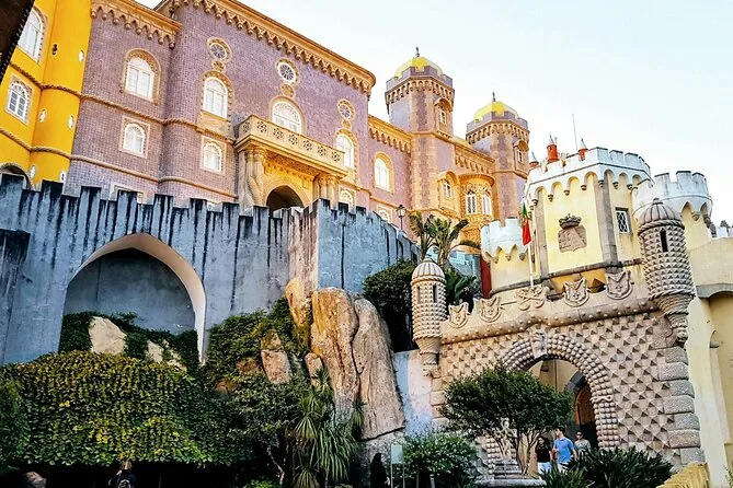 Seu dia inclui entrada sem fila no Palácio da Pena com visita guiada pelos salões do palácio e jardins do parque, transporte confortável com ar-condicionado saindo de Lisboa (com pickup para opções privadas), água mineral a bordo, paradas rápidas para fotos em locais icônicos como Quinta da Regaleira e Palácio de Seteais, além de tempo para provar doces regionais na confeitaria Piriquita antes de voltar para a cidade.