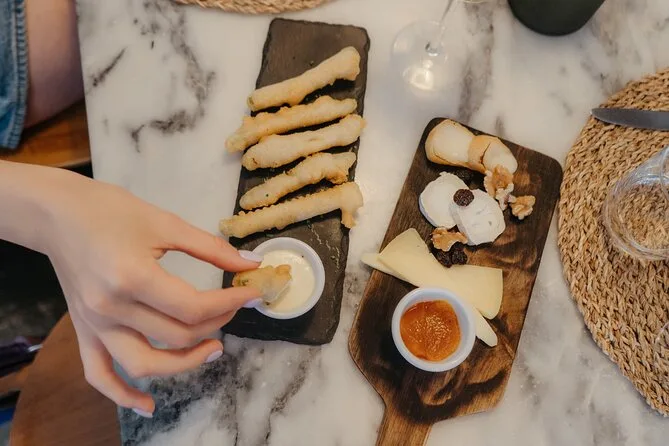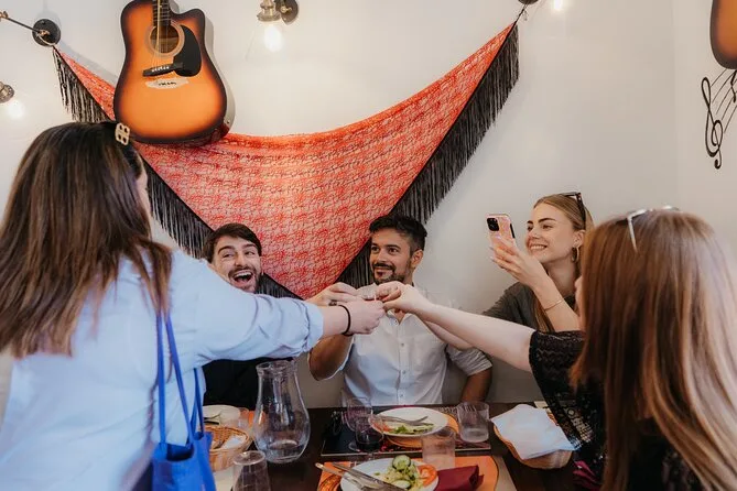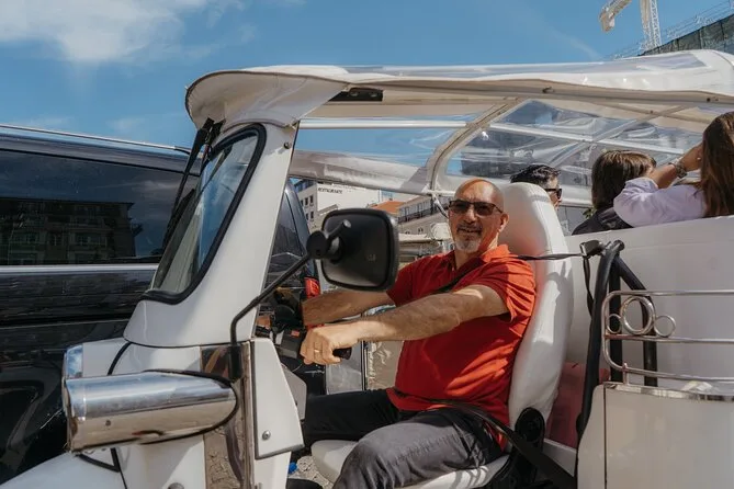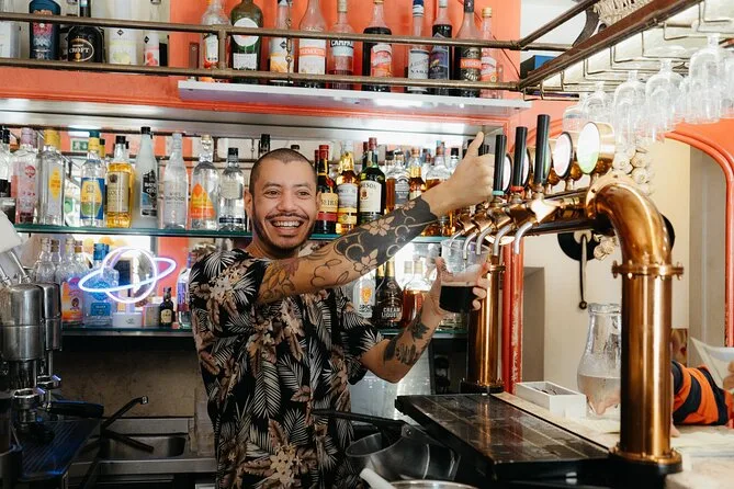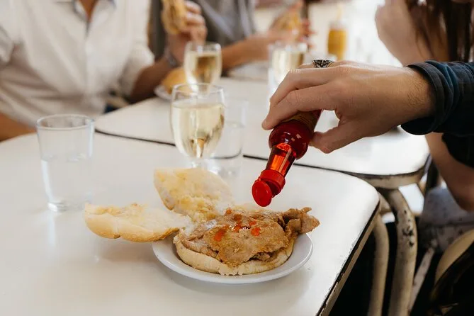 Seu dia começa ao encontrar seu guia local que fala inglês na Praça dos Restauradores, seguido por seis petiscos tradicionais portugueses em quatro paradas — como sanduíche de bifana e pastéis de nata — com vinho ou cerveja em cada lugar. Também inclui um passeio de tuk tuk de uma hora por Baixa, Alfama e Mouraria, todas as degustações e bebidas, terminando perto da Praça da Figueira.