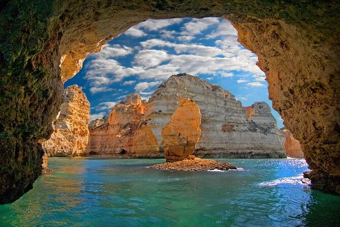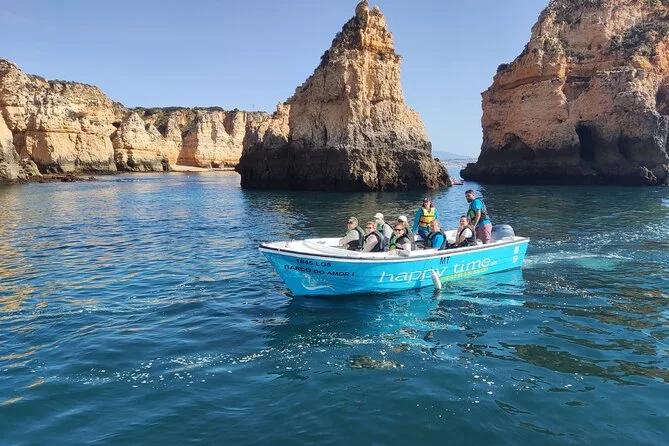 Você vai sair de Lagos em um barco pequeno com assentos acolchoados, passando pelos arcos naturais da Ponta da Piedade e entrando em grutas escondidas enquanto o guia conta histórias locais. Veja as praias Dona Ana e Camilo do mar, sinta a brisa salgada e o sol refletindo nos penhascos — e talvez até dê umas risadas tentando falar português.