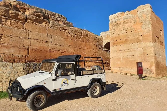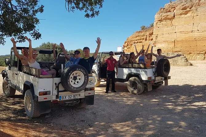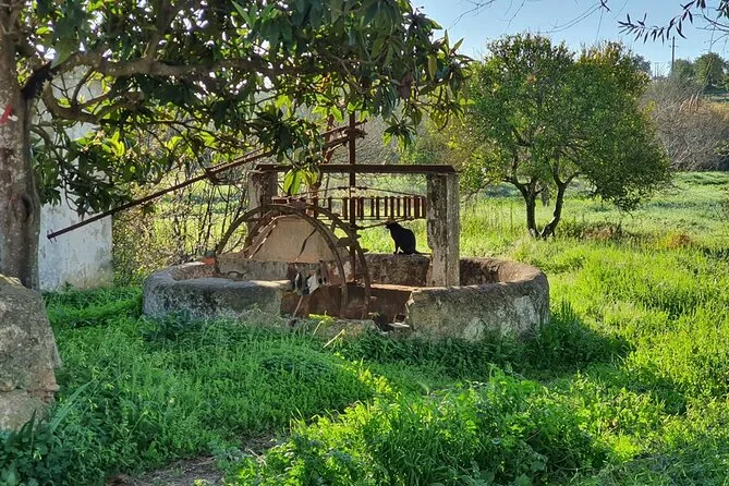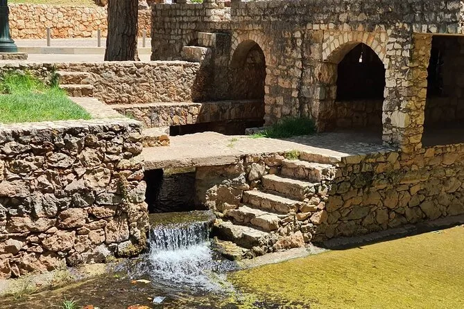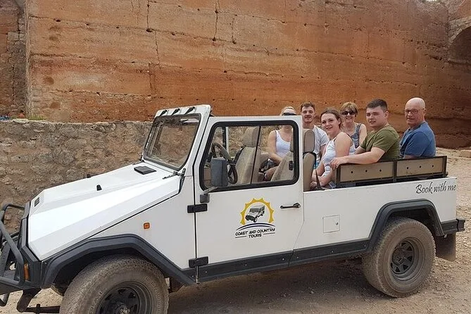 Seu meio dia inclui transporte em jeep aberto compartilhado, com cobertura para chuva se precisar, um guia experiente que conta histórias locais, paradas no Castelo de Paderne (exterior), visitas a aldeias tradicionais do Algarve como Paderne e Alte, degustação de mel e medronho numa fazenda familiar—sem pressão para comprar—e tempo para nadar nas nascentes do rio Alte, se a água permitir, antes de voltar para Albufeira.