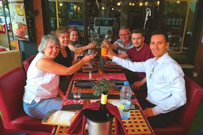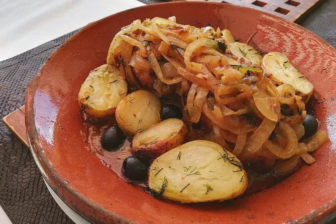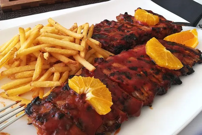 O almoço está incluído em um restaurante típico português próximo ao centro histórico de Carvoeiro — com opções para diferentes gostos.