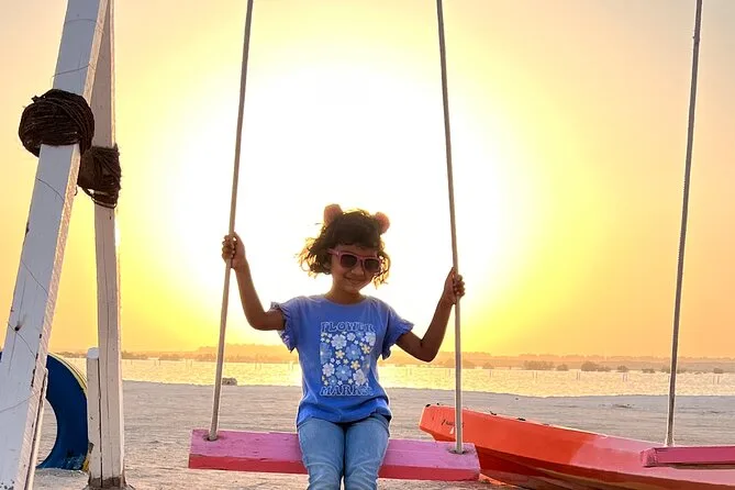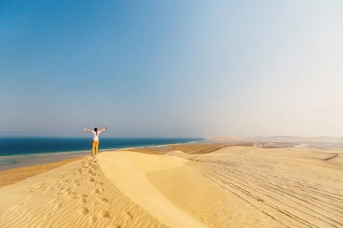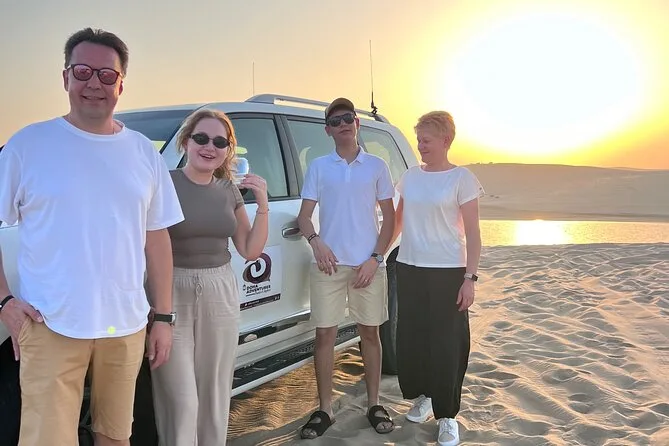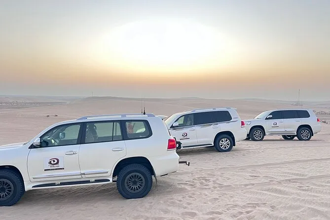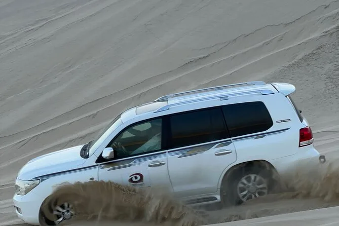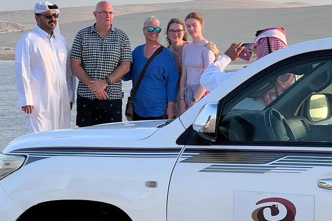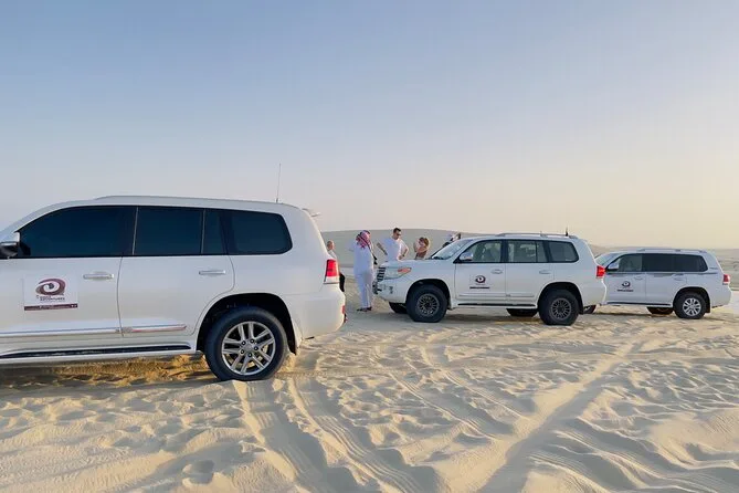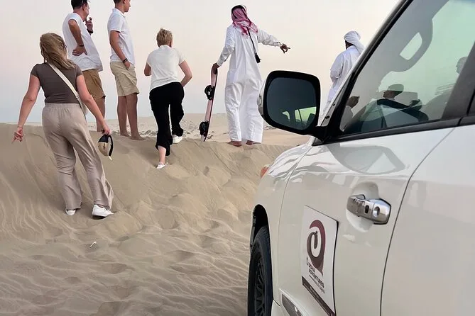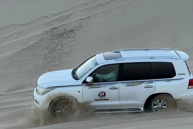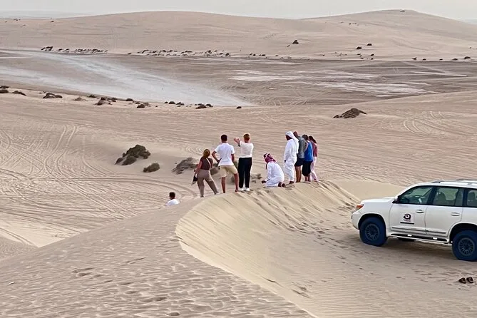 Seu dia inclui transporte em veículo com ar-condicionado saindo de Doha, água mineral durante todo o trajeto e todo o equipamento de segurança necessário, como cadeirinhas e assentos de elevação para crianças — para você só se preocupar em não levar areia para casa.