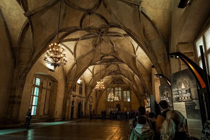 Sua tarde inclui ingressos para o Castelo de Praga (válidos por dois dias), visitas guiadas à Catedral de São Vito e Basílica de São Jorge, tempo na Golden Lane quando possível, além das histórias do seu guia licenciado enquanto exploram a pé e de bonde — sem busca no hotel ou refeições incluídas.
