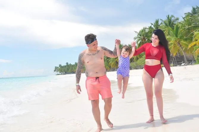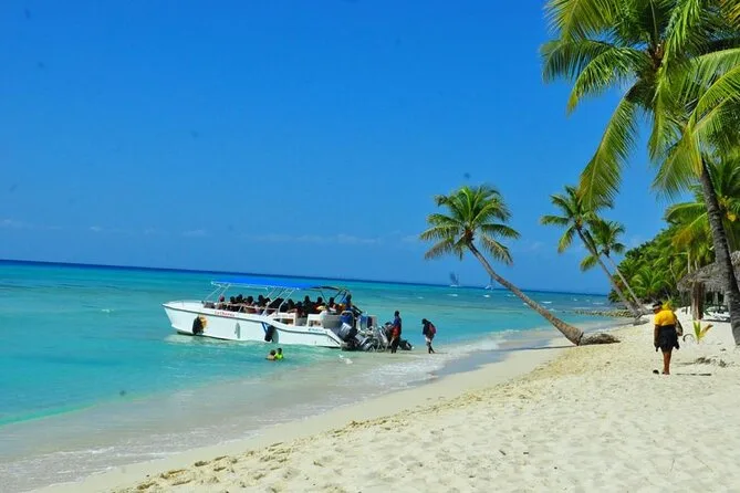 Transporte ida e volta de Santo Domingo em ônibus com ar-condicionado, passeio de speedboat até a Ilha Saona com parada na piscina natural, retorno de catamarã com música e dança, bebidas ilimitadas (cerveja, rum, água), almoço na praia e guia amigável durante todo o trajeto.