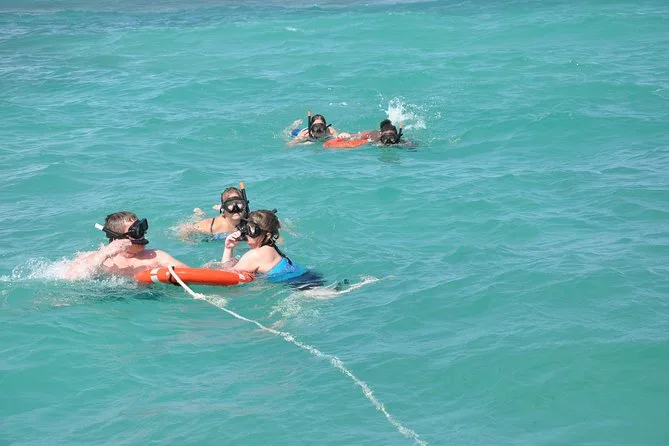 Seu dia inclui transporte ida e volta dos hotéis em Punta Cana, todo o equipamento de snorkel fornecido pela equipe simpática, petiscos e frutas tropicais a bordo, bebidas nacionais ilimitadas no open bar durante o cruzeiro entre os pontos, além de encontros supervisionados com tubarões e arraias antes do retorno confortável ao hotel.