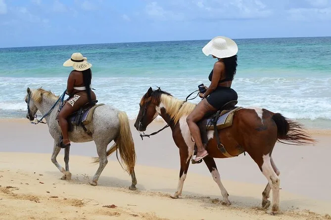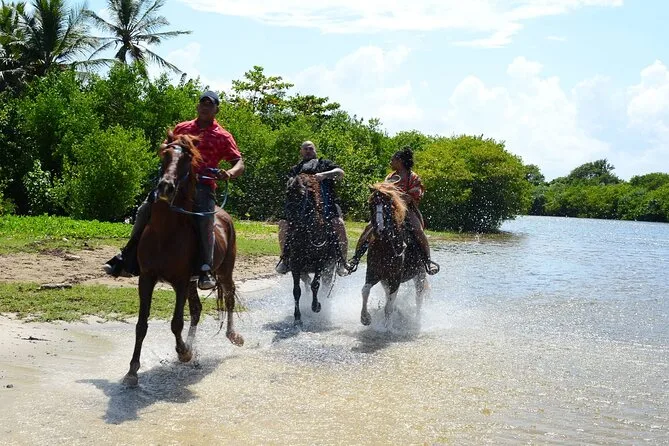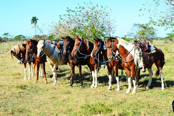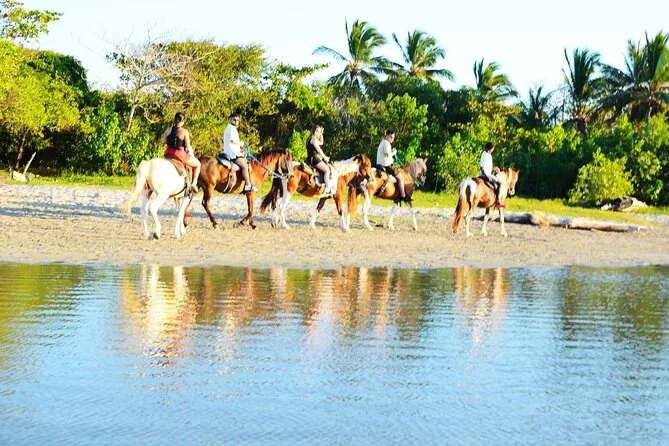 Você vai cavalgar pelo interior de Punta Cana com um guia local, cruzar trilhas na mata tropical até Boca de Maimón, onde o rio encontra o mar, e chegar à Praia de Macao bem na hora do pôr do sol. Prove Mamajuana no rancho e termine o dia relaxado e conectado com esse lugar.