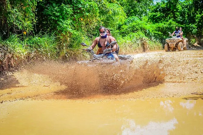 Seu dia inclui transporte de ida e volta dos hotéis ou pontos próximos em Punta Cana, passeio de ATV com guia local por trilhas na mata, degustação de café e chocolate dominicanos numa fazenda orgânica, entrada para nadar numa gruta natural, e tempo livre para curtir a Praia Macao antes de voltar para casa sujo de lama e feliz.
