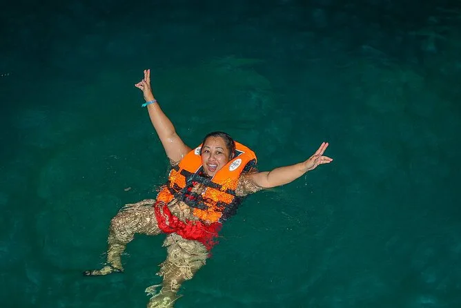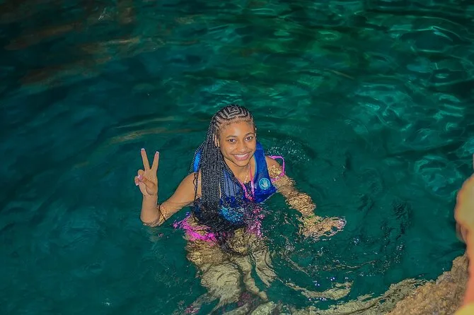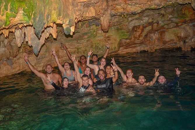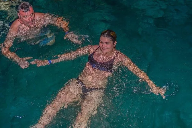 Sim, você pode nadar numa caverna de água cristalina durante o tour.