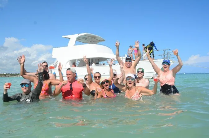 Seu dia inclui transfer ida e volta do hotel em Punta Cana, três horas a bordo de um catamarã privativo com equipe animadora, open bar ilimitado com vodka, tequila, cerveja e rum, além de refrigerantes e sucos; petiscos como frutas tropicais, nachos com molhos e mini sanduíches; uso do equipamento de snorkel; tempo para nadar na piscina natural de areia; música para dançar o tempo todo; coletes salva-vidas e boias disponíveis antes do retorno relaxado (ou levemente queimado pelo sol).