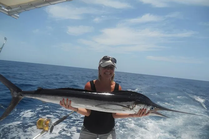 Seu dia inclui transporte confortável do hotel em Punta Cana ou Bávaro, todo o equipamento e iscas prontos para usar ao embarcar, um capitão e equipe local amigáveis para guiar o passeio, petiscos como sanduíches e salada de frutas tropicais, além de ceviche feito com o que você pescou — tudo isso com bar aberto com água, refrigerantes, cerveja, rum, vodka e vinho antes de voltarmos juntos para a costa.