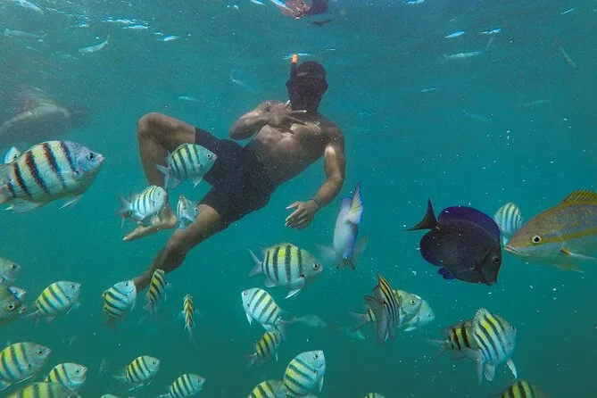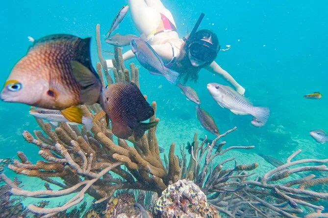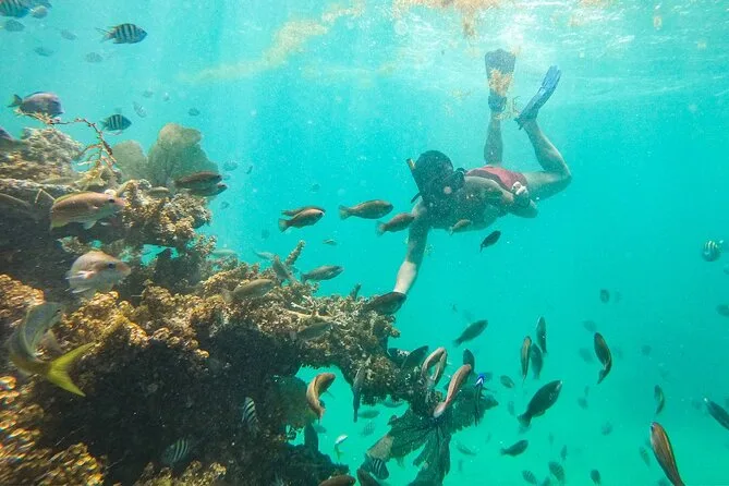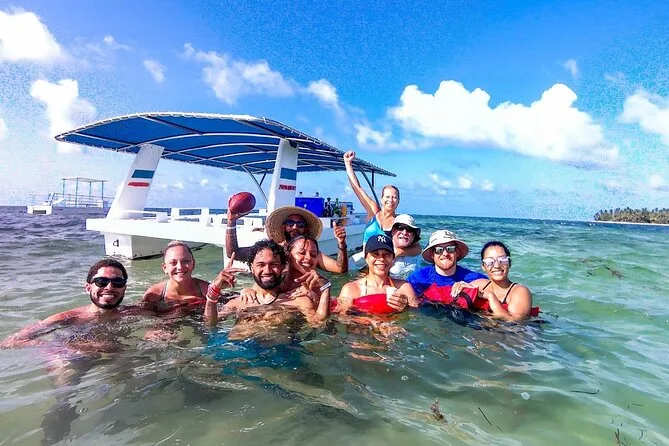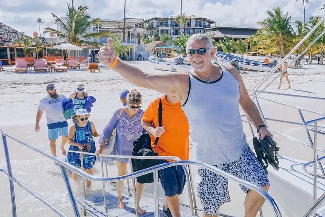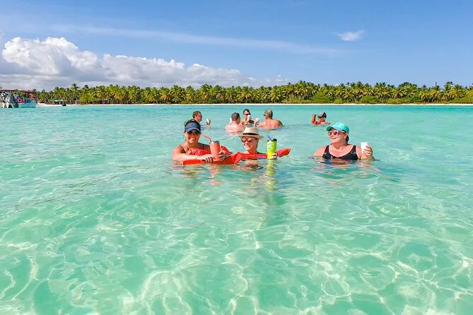 Seu dia inclui transporte compartilhado com ar-condicionado para buscar e levar em hotéis de Punta Cana, todo o equipamento e orientação para snorkel no viveiro de corais de Cabeza de Toro, bar aberto com bebidas (incluindo o coquetel Cocoloco), almoço fresquinho da cozinha flutuante — frango ou peixe grelhado com acompanhamentos — e fotos para baixar depois, sem se preocupar com o celular molhado.