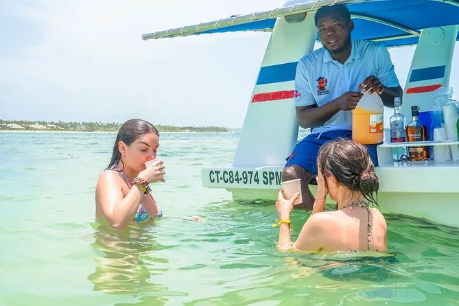 O que mais me marcou primeiro foi o som — aquele leve bater da água na lateral do barco enquanto nos afastávamos de Punta Cana. Éramos poucos, só adultos, e parecia que tínhamos encontrado algo mais tranquilo do que os típicos barcos de festa. Nosso guia, José, sorria e já distribuía bebidas geladas antes mesmo de sairmos do píer. Eu sentia o cheiro do frango grelhado vindo da cozinha flutuante deles (sim, uma cozinha mesmo, balançando ali na água). Era meio surreal, mas de um jeito bom.