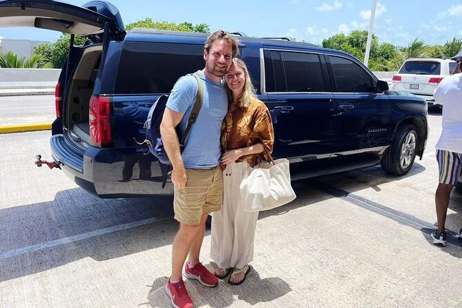 Seu transfer ida e volta inclui busca direta no aeroporto de Punta Cana por motorista local com placa do seu nome, transporte confortável com ar-condicionado nos dois sentidos entre aeroporto e hotel, além de opções para bebês ou animais de serviço, se necessário.