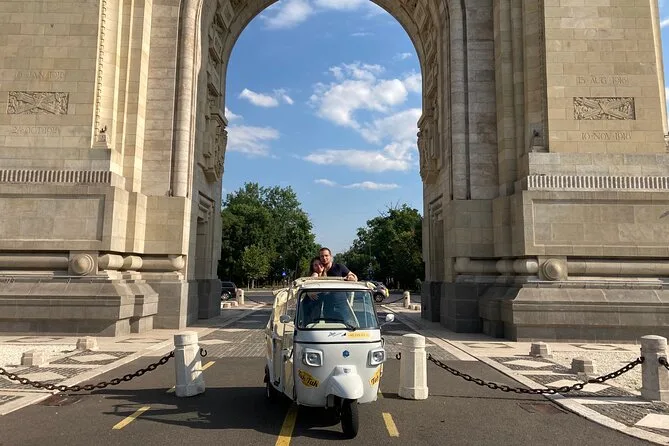 Você vai sentir Bucareste de perto neste passeio de tuk tuk — passando por pontos grandiosos como o Palácio do Parlamento e parando para fotos espontâneas sob o Arco do Triunfo. Com um guia local contando histórias e oferecendo lanches, cada canto vira uma experiência única e cheia de vida.