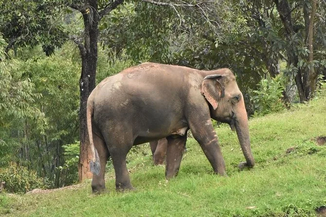 Seu dia inclui transporte com ar-condicionado e retirada no hotel em Chiang Mai, entrada no santuário de elefantes administrado por famílias locais, guia em inglês (ou japonês na maior parte dos dias), água durante toda a visita, seguro para sua tranquilidade e um almoço caseiro tailandês com frutas da estação antes do retorno à tarde.