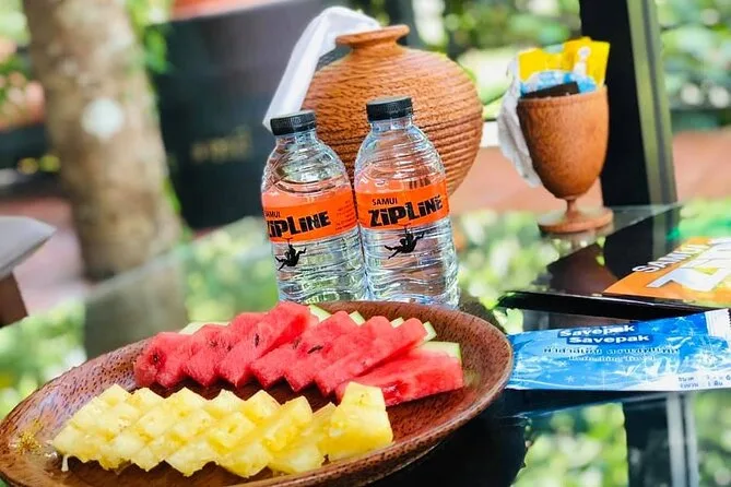 Seu dia inclui transfer ida e volta do hotel em várias áreas de Koh Samui (como Lamai e Chaweng), todo o equipamento de segurança e instruções com equipe treinada antes de começar a voar entre as árvores, seguro completo durante toda a aventura, além de água mineral fresca para se refrescar entre as tirolesas, com retorno ao hotel no final.