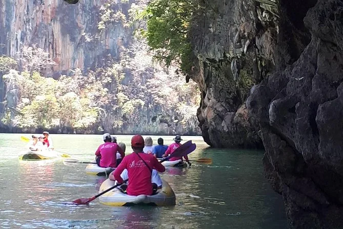 O passeio inclui natação, snorkel em Hong Krabi, canoagem na Ilha Talu, visita à Ilha James Bond e exploração da Baía de Phang Nga.