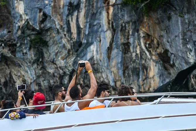 Seu dia inclui traslado de ida e volta em van com ar-condicionado dentro da província de Phuket, todas as taxas de entrada para as ilhas visitadas de speedboat, uso de equipamento de snorkel e pranchas de remo, canoagem nas cavernas da Ilha Talu com guia local que fala inglês durante todo o passeio, além de água mineral, chá da manhã com petiscos leves, seguro viagem para sua tranquilidade, impostos locais pagos — e um almoço tradicional servido na vila de pescadores flutuante de Panyee antes de voltar para casa com gostinho de sal e satisfação.