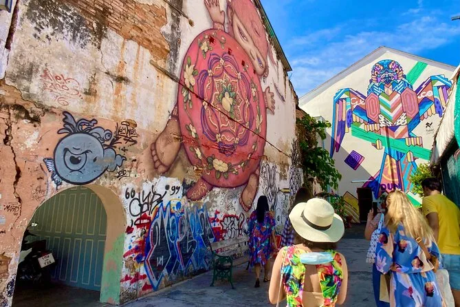 O mirante de Karon estava cheio, mas valeu a pena pela vista das três baías (entendo porque todo cartão postal usa esse ângulo). No Windmill Point tinha menos gente — só um casal fazendo fotos de casamento e uma criança tentando empinar pipa. Depois passamos pela Cidade Antiga de Phuket: prédios em tons pastel, fios elétricos entrelaçados, lojistas acenando das portas. Alguém assava castanhas numa fábrica pequena; juro que senti o cheiro antes mesmo de chegar perto. Não é nada polido ou perfeito — e é justamente isso que torna tudo especial.