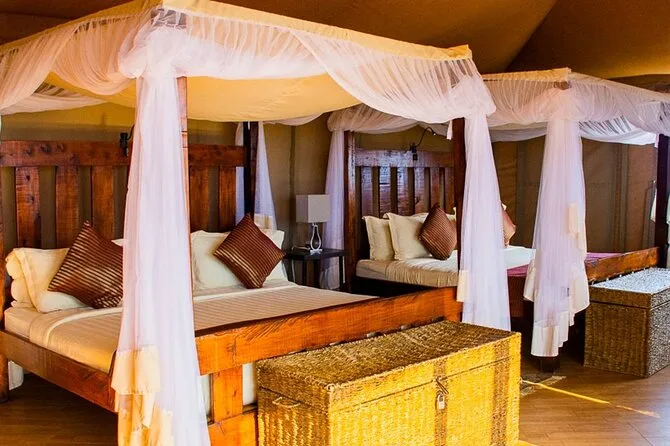 Seu pacote inclui todas as taxas dos parques, safáris guiados em veículos 4x4 com teto retrátil para melhor visualização, água mineral durante os safáris, acomodação com pensão completa em acampamentos ou lodges similares todas as noites, além de visitas a uma vila Maasai e à Garganta de Olduvai no percurso.