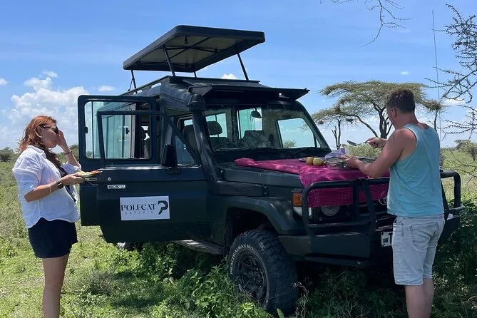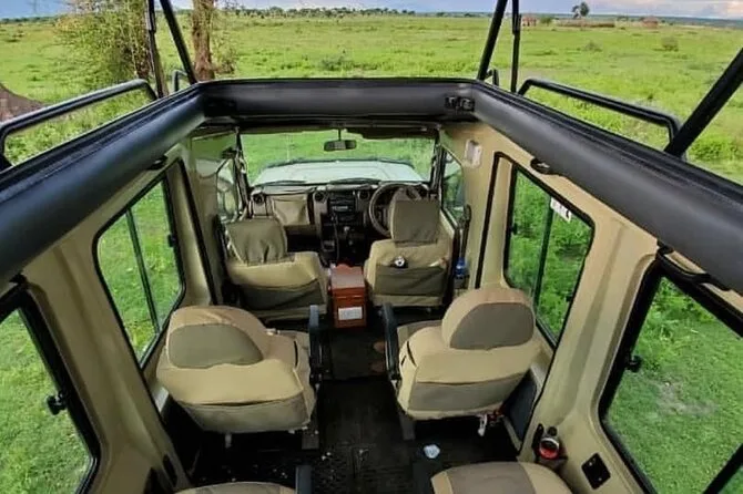 Usamos um jipe de safári com ar-condicionado e teto retrátil para os passeios.