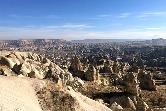 Você visita o mirante Göreme Panorama, a Cidade Subterrânea de Derinkuyu, o Vale de Ihlara, o Mosteiro de Selime, o mirante do Vale dos Pombos e uma fábrica de ônix.