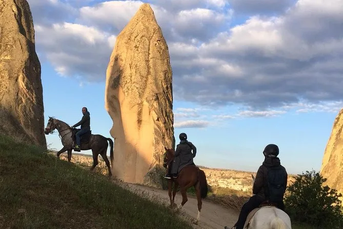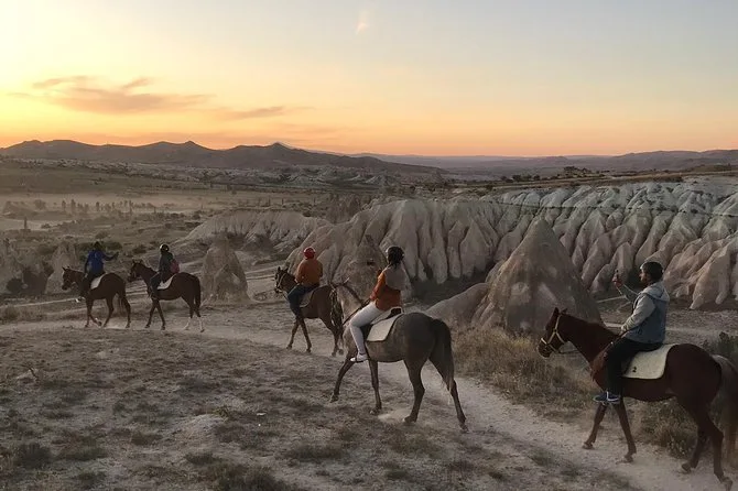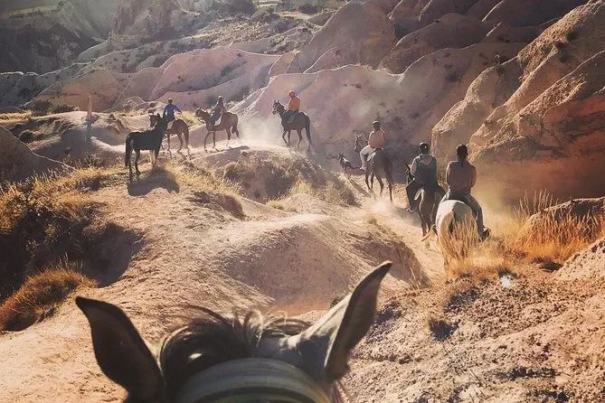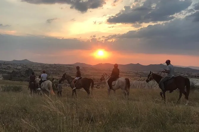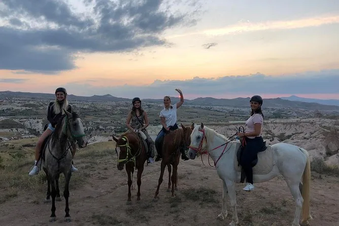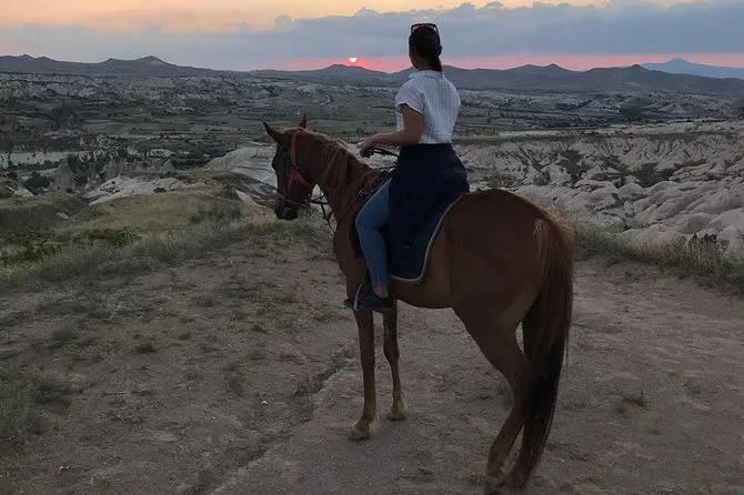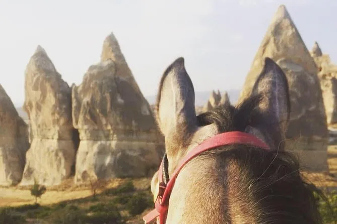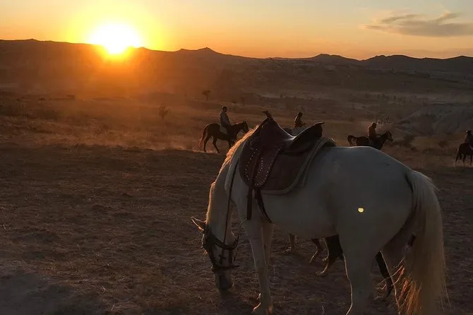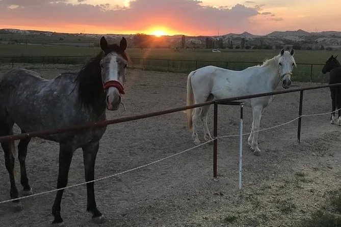Você vai cavalgar de Cavusin pelos vales Rose e Red com um guia local, fazer uma pausa para um chá de maçã no Cross Church Cafe enquanto as cores do pôr do sol iluminam as chaminés de fada da Cappadocia. Prepare-se para trilhas silenciosas, conversas verdadeiras, transporte do hotel e momentos que vão ficar na memória muito depois de se despedir do seu cavalo.