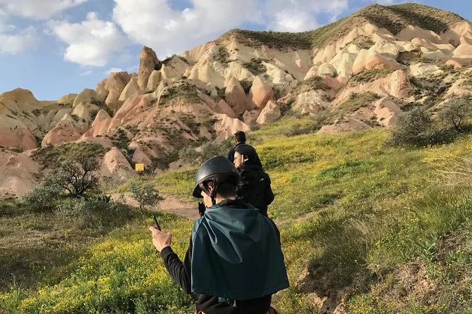 Sua noite inclui transporte privado com busca e retorno ao hotel perto de Cavusin, uso de capacete para segurança, tempo para descansar no Cross Church Cafe onde pode comprar bebidas, além da companhia de um guia local que conhece esses vales como a palma da mão antes de voltar ao hotel após o pôr do sol.