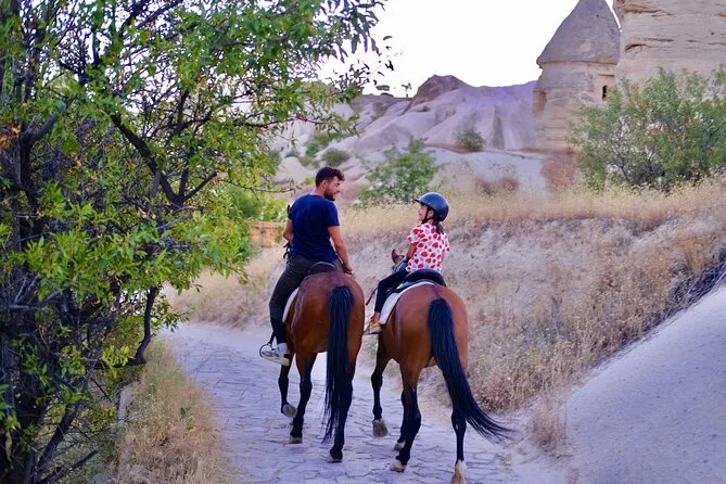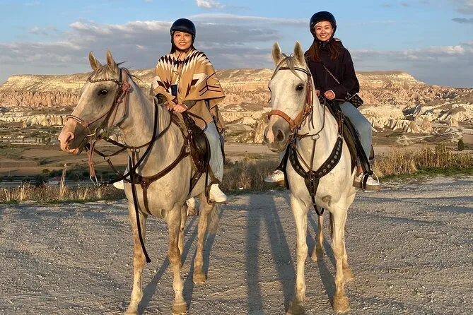 Você vai cavalgar pelos vales Rose e Sword em Cappadocia com um guia local que conta histórias pelo caminho. Espere cores que mudam nas pedras antigas, trilhas tranquilas longe da multidão e tempo para criar conexão com seu cavalo — seja no passeio de dia ou ao pôr do sol. Não é só ver, é sentir tudo na pele e guardar na memória.