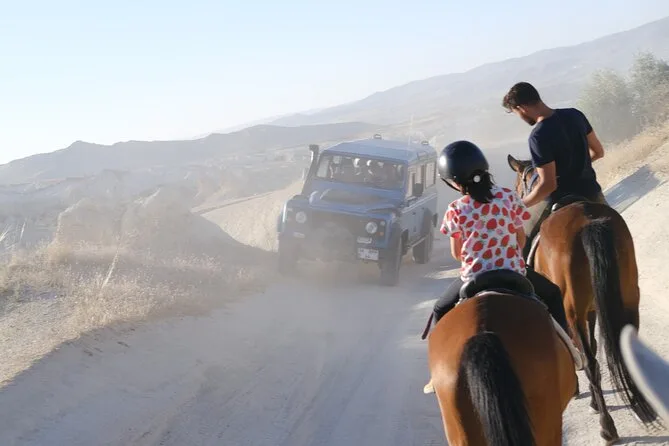 Seu dia inclui transporte privativo de ida e volta até os estábulos perto de Göreme, além do uso do capacete durante o passeio pelos vales Rose e Sword. O guia local ajusta as rotas conforme o clima e seu nível para que você aproveite os cenários surreais com tranquilidade e no seu ritmo.