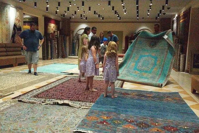 O almoço foi em um restaurante local longe da muvuca turística — um pátio sombreado onde provamos gözleme e frango grelhado. O pão estava quentinho e macio; até meu sobrinho, que é bem seletivo, comeu tudo. Depois, visitamos oficinas de tapetes e cerâmicas turcas. Sem pressão para comprar nada (de verdade), mas ver as mulheres fazendo nós nos tapetes é hipnotizante. Se quiser conhecer o artesanato ou bater papo com os locais tomando um chá, essa é a hora.