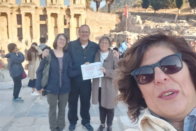 Este tour privado inclui busca e retorno no porto de Kusadasi, guia licenciado em inglês só para seu grupo, transporte com ar-condicionado (até 8 pessoas), todas as entradas incluindo Caravanserai e Templo de Ártemis, opção de furar fila se necessário, almoço especial local (com opções vegetarianas), paradas para fotos ou descanso onde quiser, além de visitas a oficinas de artesanato locais — sem taxas escondidas ou pressão para comprar.