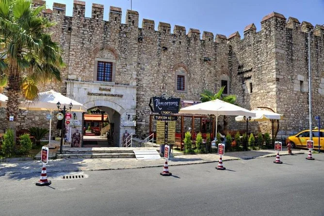A primeira parada foi o Caravanserai Öküz Mehmet Paşa, a poucos minutos do cais. O lugar parece uma pequena fortaleza, com paredes de pedra firmes mesmo depois de séculos. Lá dentro, o silêncio é maior que do lado de fora — só o eco suave dos nossos passos e um cheirinho de pedra antiga misturado com algo doce vindo de uma padaria próxima. O guia apontou o arco de mármore na entrada e contou histórias dos mercadores que dormiam ali com seus camelos e mercadorias. Tem uma escada escondida em um canto que leva a quartos com vista para o pátio — quase não vi até ele me chamar.