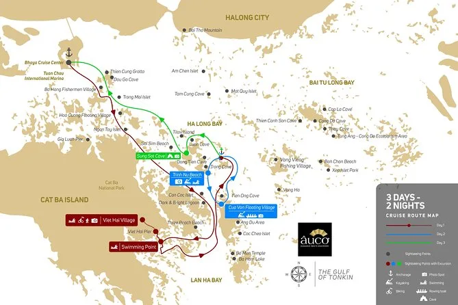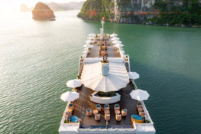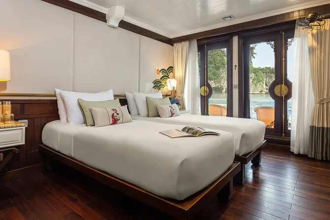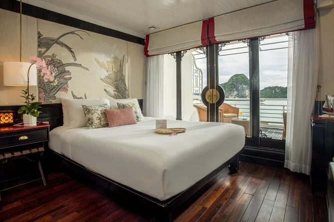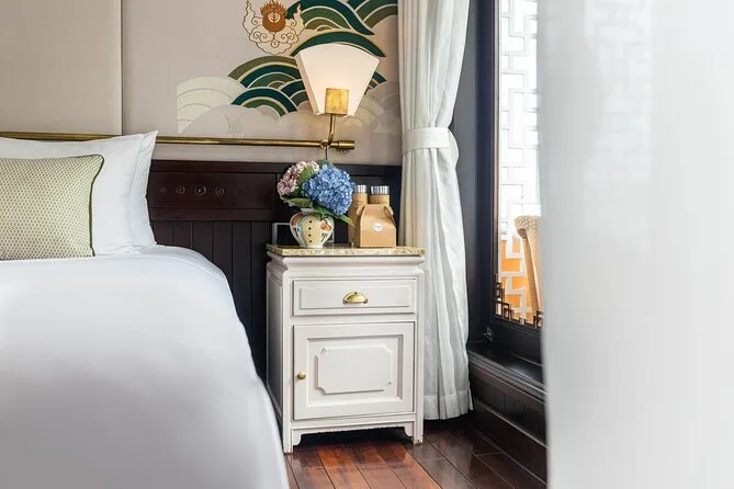 Sua viagem inclui transfer compartilhado ida e volta de Hanói (se selecionado), todas as refeições a bordo com água mineral à vontade (bebidas alcoólicas à parte), duas noites em cabine privativa com ar-condicionado e varanda, passeios guiados com bike ou buggy na vila Viet Hai na ilha de Cat Ba, caiaque (quando disponível), visitas à Fazenda Orgânica Bhaya e ao Café, além da Caverna Surprise e Vila Flutuante de Cua Van de barco ou caiaque — sem contar os petiscos diários no happy hour e guias locais super atenciosos durante toda a viagem.