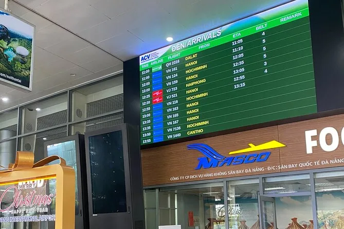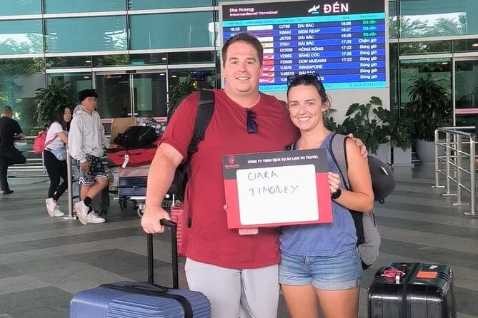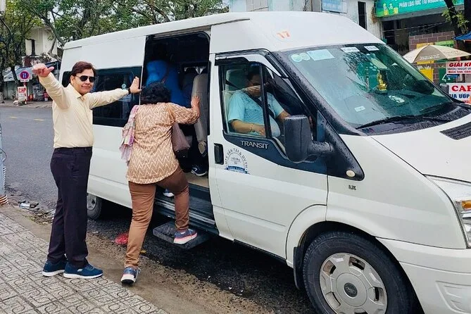 Seu transfer privado inclui pickup porta a porta no Aeroporto Internacional de Da Nang ou no seu hotel em Da Nang/Hoi An, veículo com ar-condicionado adequado ao tamanho do grupo, água mineral cortesia, todos os custos de combustível e estacionamento, além da ajuda com as malas por um motorista local simpático que estará te esperando na área de desembarque antes do horário previsto.