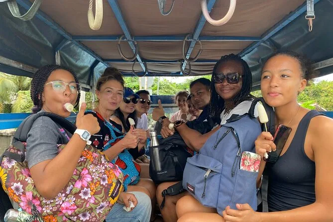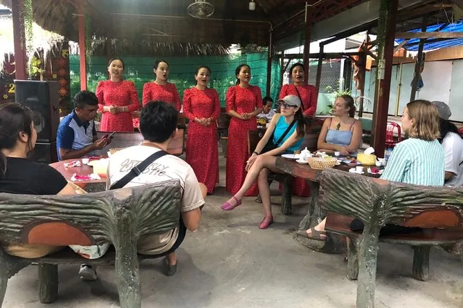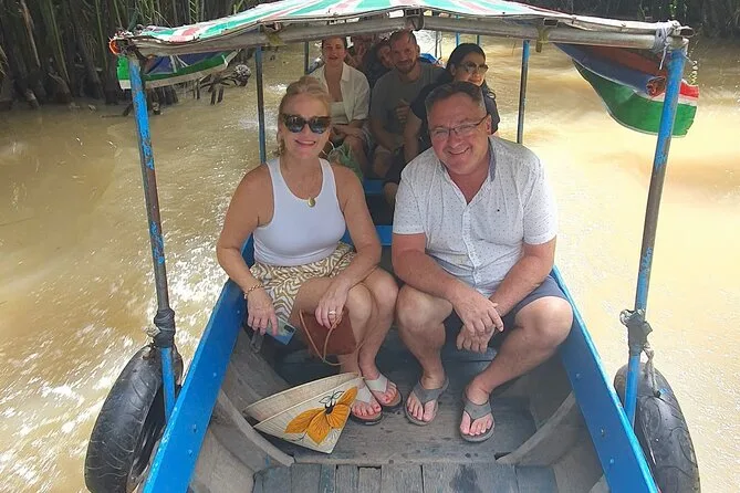 Você vai navegar pelos canais verdes do Delta do Mekong de sampan, provar vinho de mel na Ilha do Unicórnio, ver como fazem doce de coco em Ben Tre, almoçar com os locais e explorar os pátios tranquilos do Pagode Vinh Trang. Risadas com o guia, frutas tropicais por toda parte e momentos que ficam na memória depois de voltar para Ho Chi Minh.