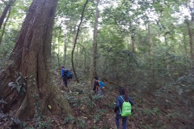 Deixadas as bikes, começamos a trilha rumo ao Langbiang. O caminho serpenteia por um bosque de pinheiros no começo — silêncio só quebrado pelos pássaros e o farfalhar das agulhas sob os pés. Conforme subíamos, a vegetação mudou; de repente, estávamos em uma floresta de folhas largas, o ar mais denso e o zumbido das cigarras como pequenos motores. Minh apontou orquídeas selvagens agarradas aos galhos e nos mostrou onde os locais às vezes avistam esquilos voadores (nós não tivemos essa sorte). O cume fica a 2.169 metros — as nuvens passavam tão perto que dava para quase tocar. Em dias claros, a vista se abre para a cidade de Da Lat e os vales ao redor.
