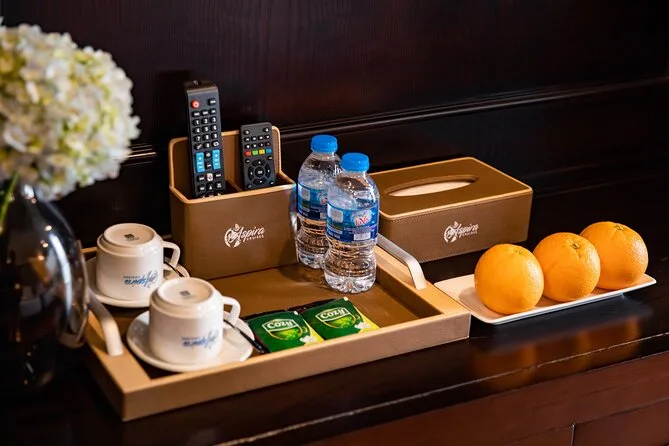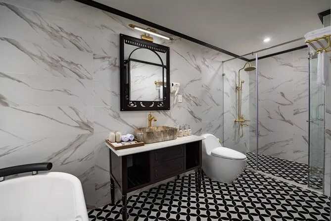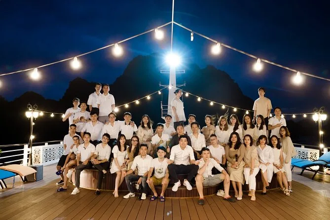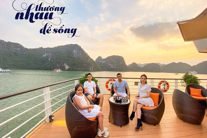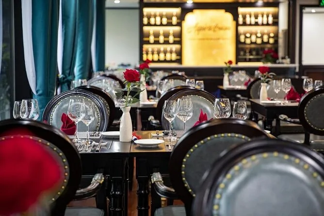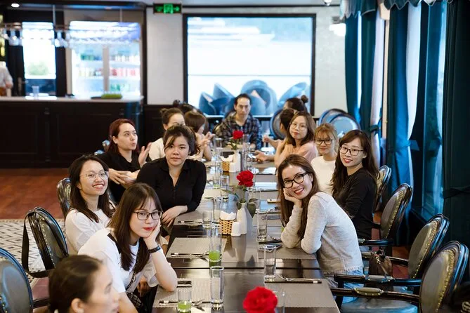 Seu passeio inclui transfer do hotel no Bairro Antigo de Hanói (se reservado), entradas para todas as atividades em Ha Long & Lan Ha Bay, uma noite em cabine privativa com varanda e banheira em um navio 5 estrelas, todas as refeições incluindo café da manhã e jantar com música ao vivo, passeio de caiaque ou barco de bambu na Dark & Light Cave com guias locais, aula de Tai Chi ao nascer do sol no convés, aula prática de culinária vietnamita com a equipe, uso de equipamentos de pesca — e até toalhas geladas na chegada.