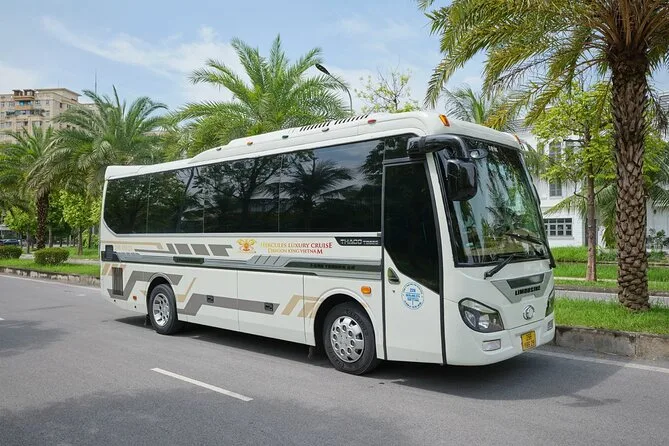 Seu dia inclui traslado do hotel no Bairro Antigo de Hanói (se selecionado), transporte em ônibus com ar-condicionado até o porto de Tuan Chau, todas as taxas de entrada nas atrações da Baía de Halong, incluindo a Gruta Sung Sot e a Ilha Titop, passeio de caiaque ou barco de bambu na Baía Luon, duas garrafas de água mineral a bordo, um almoço buffet farto (com opções vegetarianas), além de frutas e bolo no pôr do sol antes do retorno a Hanói à noite.