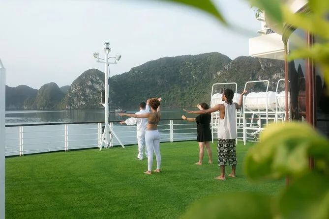 Acordei cedo (nem sei por quê) e fiquei só observando o sol nascer atrás daqueles picos irregulares. Tinha aula de tai chi no convés para quem quisesse — eu preferi tomar um chá e ouvir o som baixo dos outros barcos cortando a névoa. O café da manhã foi simples: pão, frutas e café forte. No meio da manhã já estávamos voltando para o porto, e, sinceramente, eu ainda não queria ir embora. Acho que ninguém quer mesmo.