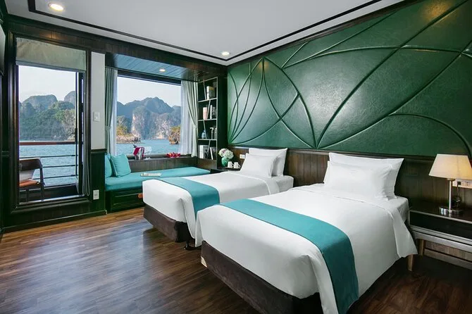 Seu passeio com pernoite inclui transfer de ida e volta do seu hotel no Bairro Antigo de Hanoi, todas as refeições a bordo (almoço, jantar com frutos do mar frescos, café da manhã), duas garrafas de água mineral por dia na cabine, equipamento para caiaque para explorar cantinhos escondidos da Baía de Halong, além de uma aula prática de culinária vietnamita com a equipe antes do retorno a Hanoi.