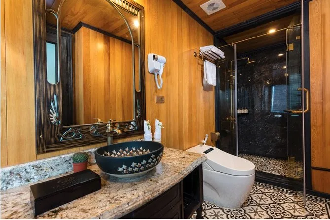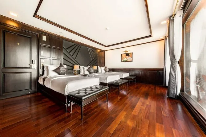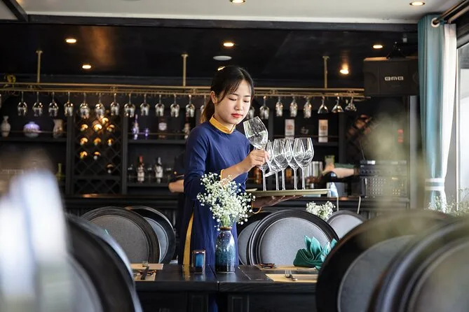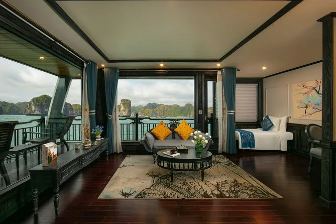 Seu roteiro inclui todas as refeições, do almoço ao brunch, além de drinks de boas-vindas e frutas frescas no quarto. Um guia local acompanha as saídas de caiaque e as aulas de culinária, enquanto as taxas de entrada e o uso do equipamento de pesca também estão cobertos — só leve pouca bagagem, pois a equipe ajuda com as malas na hora do desembarque na Marina de Tuan Chau.