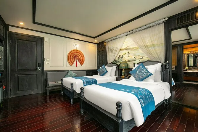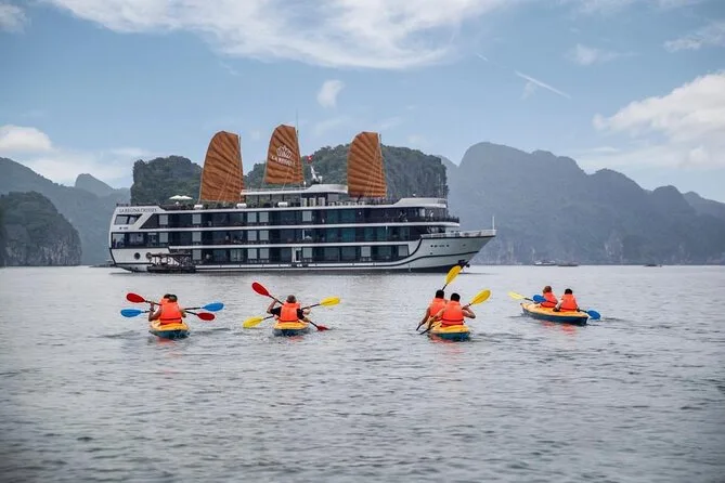 Embarque num cruzeiro boutique por Halong Bay e Lan Ha Bay, remando em enseadas silenciosas, aprendendo a fazer rolinhos vietnamitas ao pôr do sol e começando o dia com tai chi no convés. Com refeições frescas incluídas e guia local em cada passo, você vai curtir conforto e um olhar verdadeiro sobre a vida nessas águas lendárias.