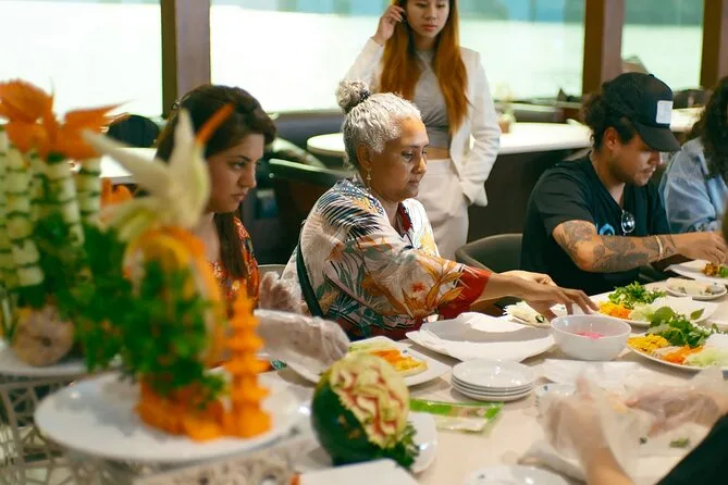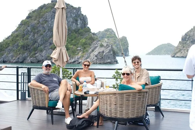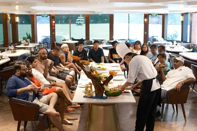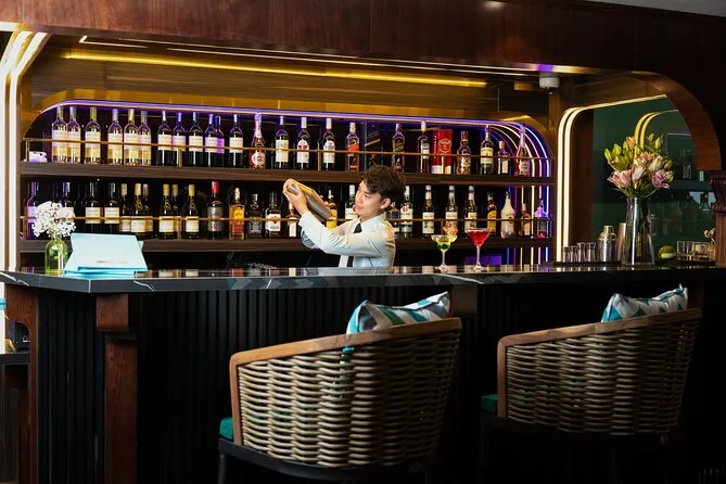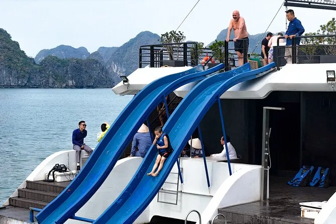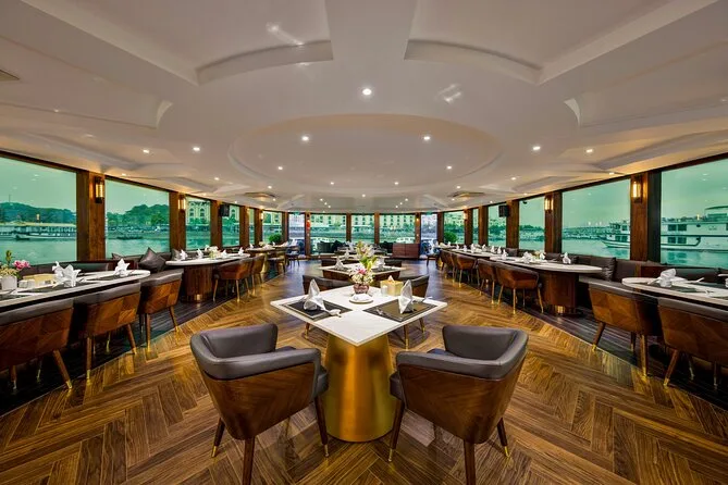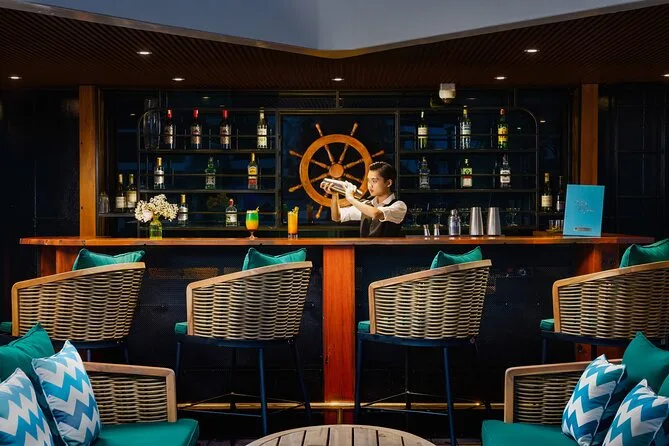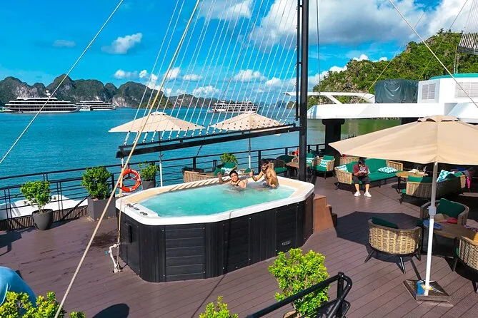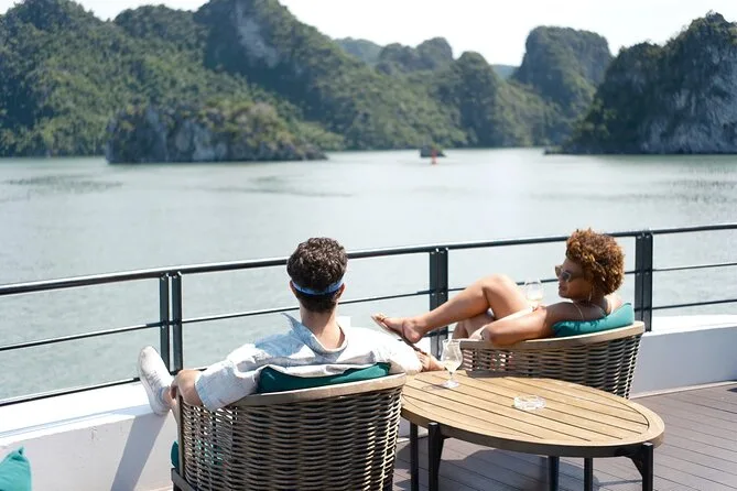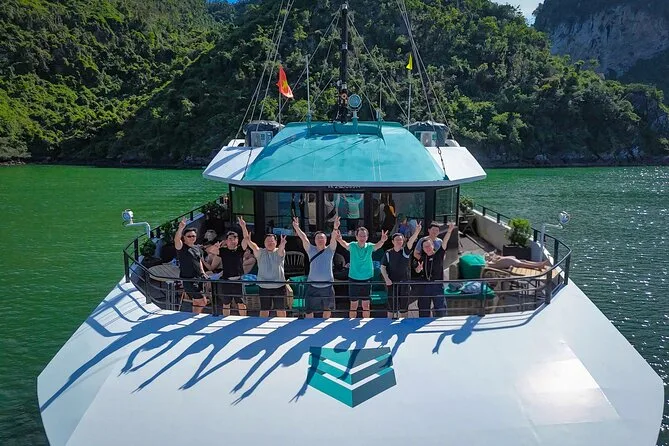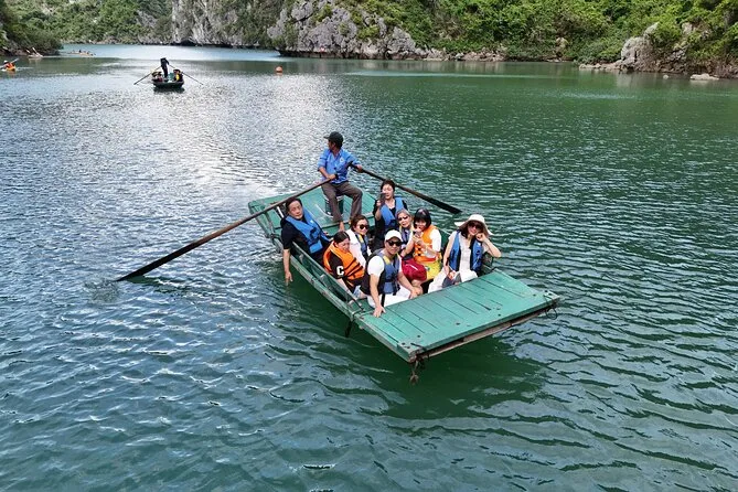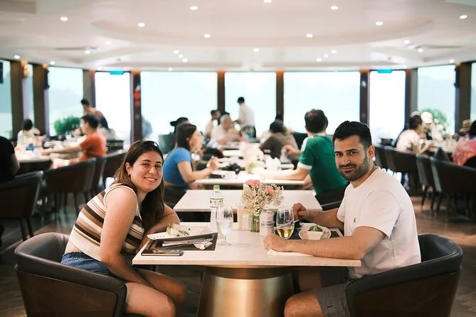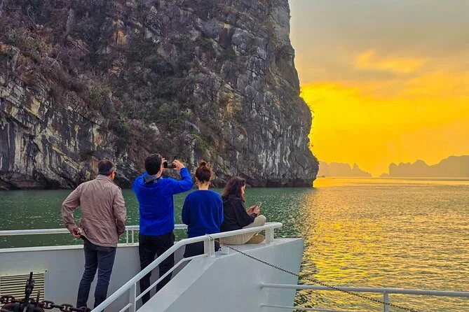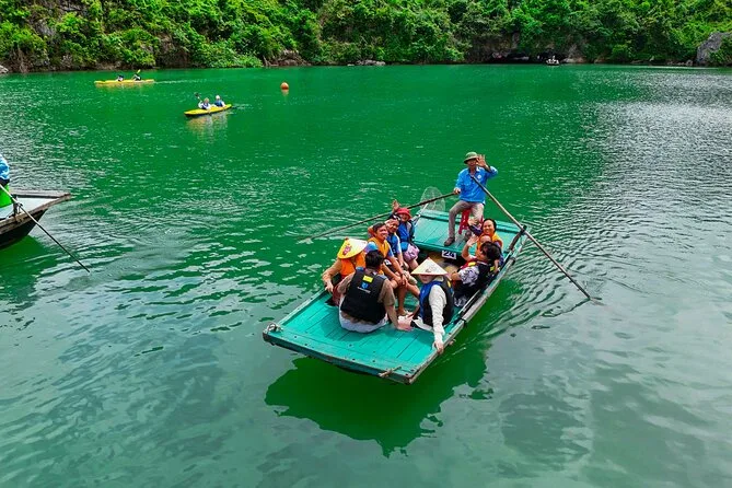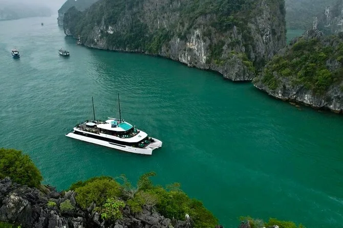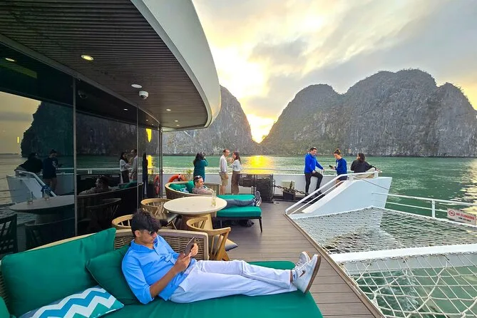 Seu dia inclui traslado de ida e volta em limousine do Bairro Antigo de Hanói, todas as taxas de entrada para os pontos da Baía de Halong e Lan Ha, um drink de boas-vindas ao embarcar, almoço completo feito por um chef premiado (com água liberada), opções de caiaque ou passeio de barco de bambu pelas lagoas tranquilas, tempo para nadar ou relaxar no Frog Pond em Lan Ha, aula prática de rolinhos primavera vietnamitas com degustação, além de chá com bolinhos e frutas ao pôr do sol antes do retorno confortável ao seu hotel.
