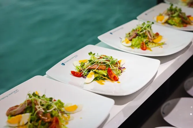 Sim, o almoço é preparado por um chef premiado e servido no barco; bebidas além da água são cobradas à parte.