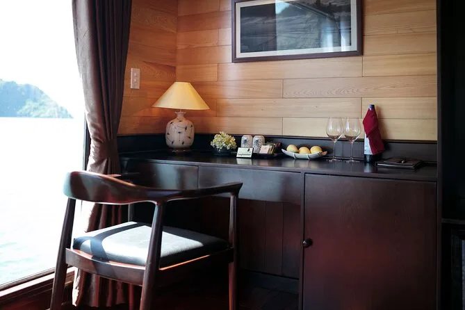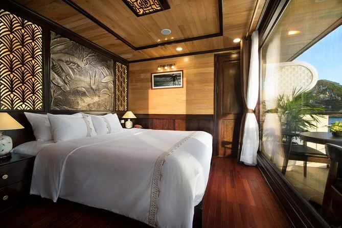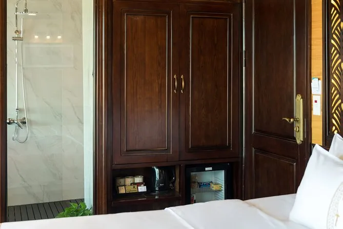 Você ficará em uma cabine de luxo a bordo do Cruzeiro V’Spirit na Baía de Lan Ha nas duas noites.