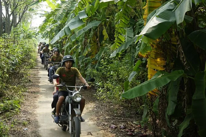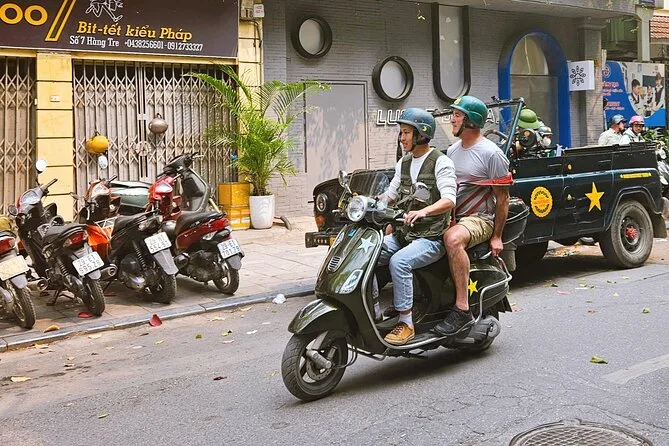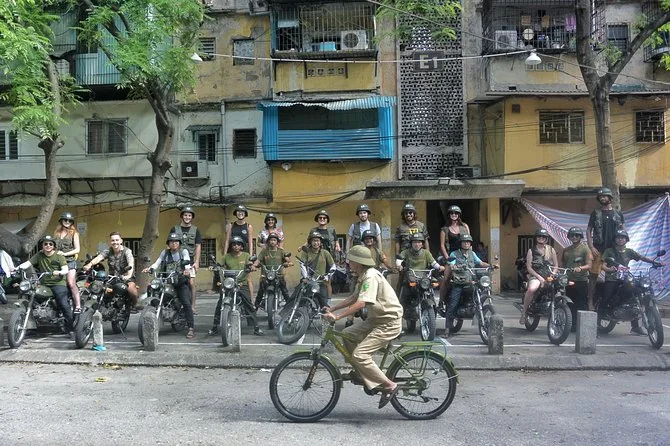 O seu dia inclui traslado de ida e volta do hotel no Bairro Antigo ou arredores, todas as comidas e bebidas durante o passeio (dos rolinhos primavera fritos ao café de ovo), um guia local que fala inglês e conhece todos os atalhos, um piloto experiente para cada moto Minsk vintage (para você só curtir o passeio), além de capacetes e capas de chuva se o tempo virar.